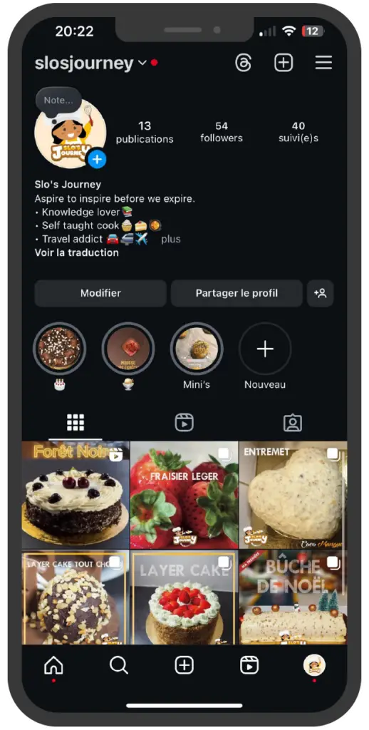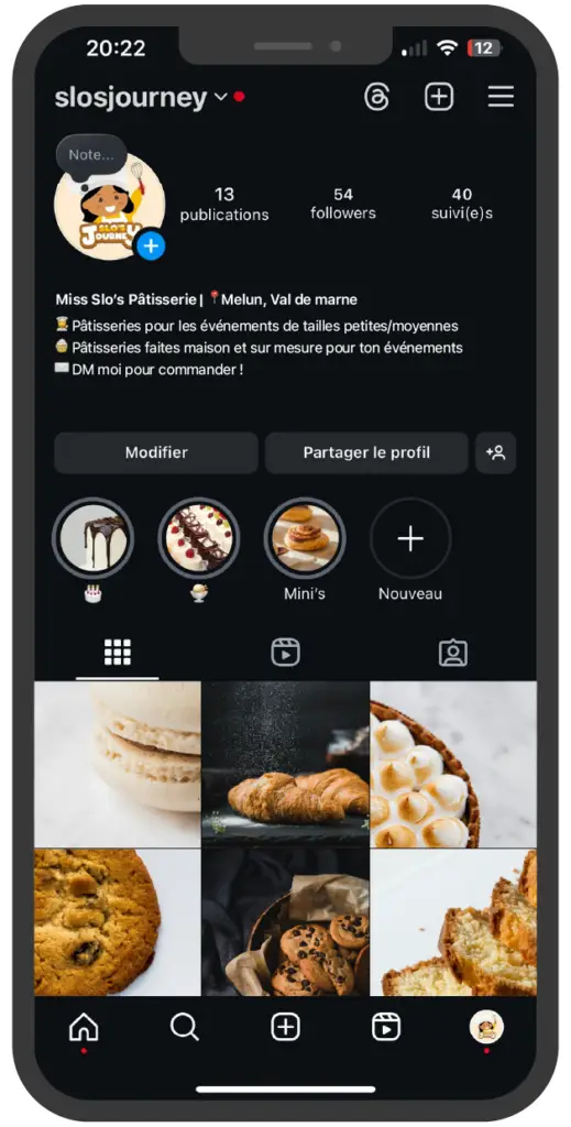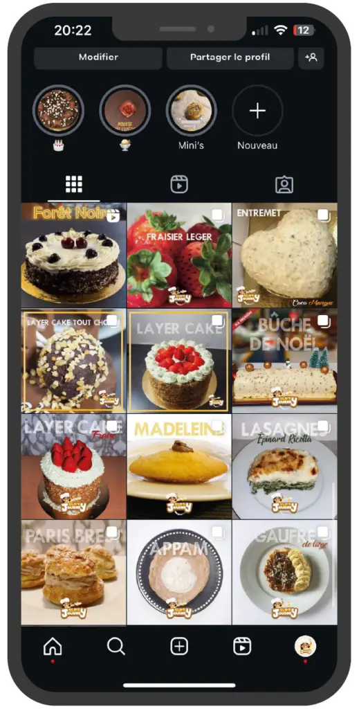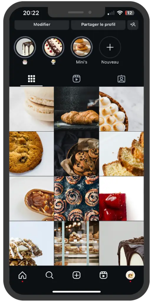 Exemple de feed instagram fictif pour un pâtissier :